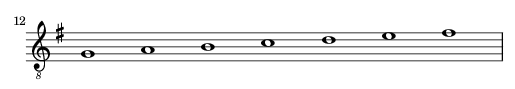 Mon premier exercice à faire pour la leçon suivante a été d’écrire les douze gammes majeures, en les ordonnant par quartes (c’est le cycle des quartes, qui reviendra). Donc do, fa, si♭, etc… Et je l’ai fait, avec papier et stylo. Et je le refais aujourd’hui avec lilypond :